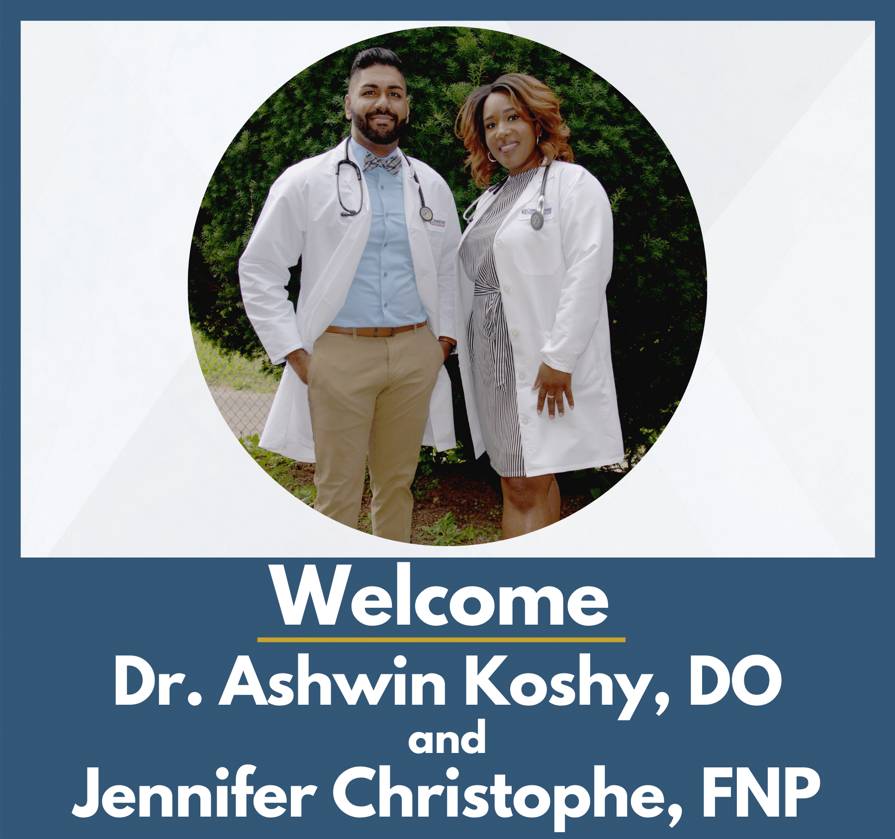 CORNWALL, N.Y. (September 25, 2020)—Cornerstone Family Healthcare is pleased to welcome Dr. Ashwin Koshy, DO, and Jennifer Christophe, FNP to the team. Both Dr. Koshy and Jennifer Christophe will be practicing family medicine at the community health center’s Port Jervis location.