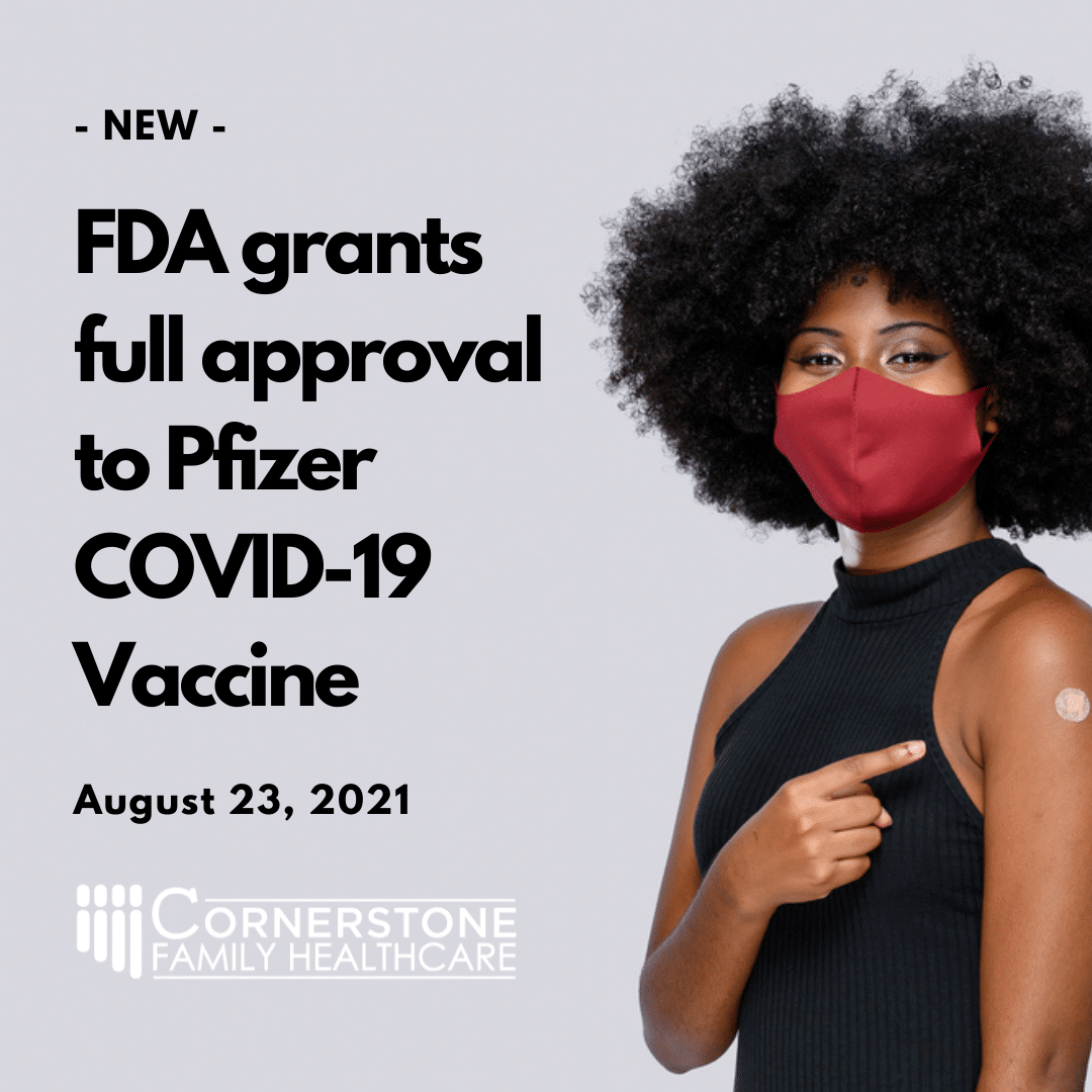 On August 23, 2021 the FDA granted full approval to the Pfizer/BioNTech COVID-19 vaccine for people age 16 and older– further proving that the vaccine is safe and effective.